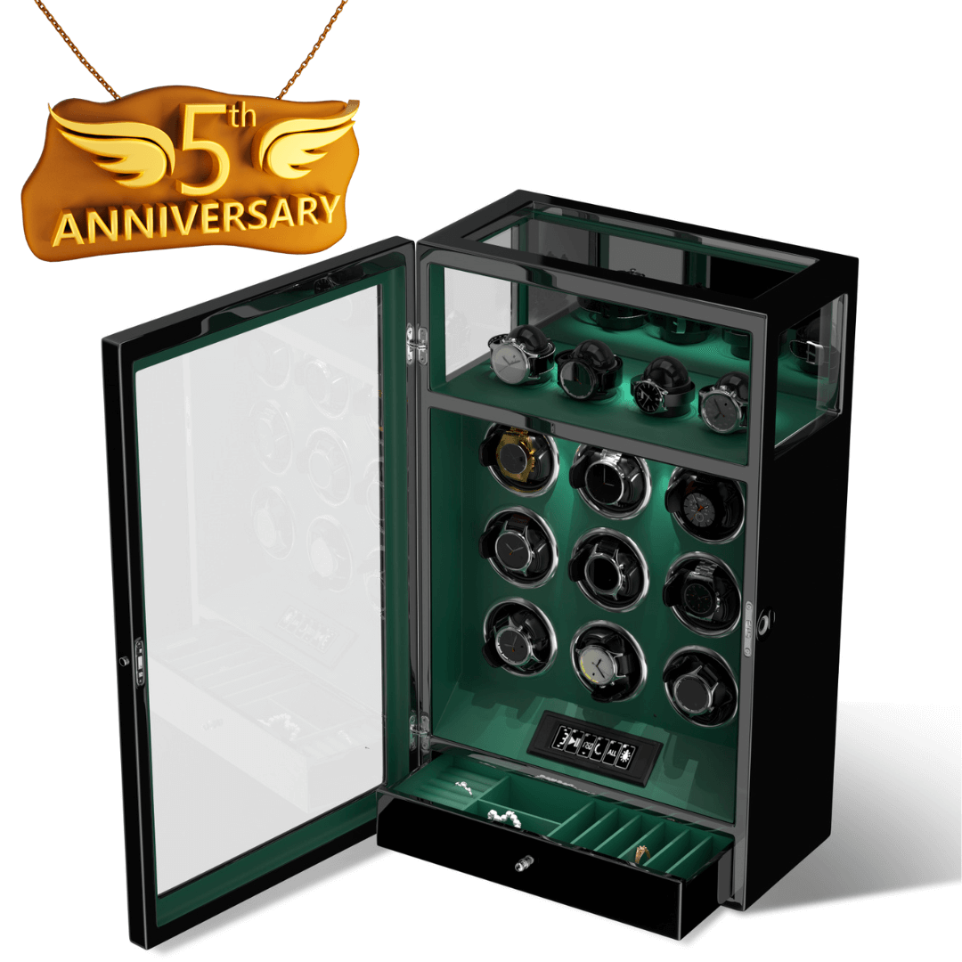 Verrouillage D'empreinte Digitale 9 Remontoirs De Montre Avec 4 Supports De Montre Stockage Télécommande LCD - VertVerrouillage D'empreinte Digitale 9 Remontoirs De Montre Avec 4 Supports De Montre Stockage Télécommande LCD - Vert
