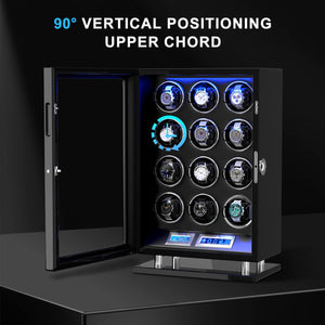 • LCD et TÉLÉCOMMANDE : le contrôle de l'écran tactile LCD vous permet de régler chaque remontoir sur les paramètres souhaités pour votre montre. En outre, vous pouvez également le contrôler par télécommande, régler facilement les programmes et allumer/éteindre la lumière sans ouvrir la porte.