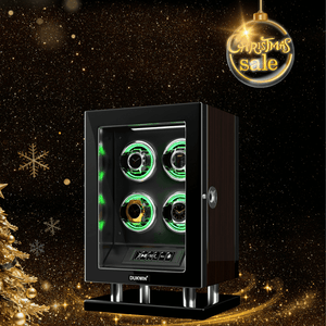 AFFICHAGE NUMÉRIQUE ET TÉLÉCOMMANDE : Pour maîtriser les différents besoins de remontage de vos montres, la programmation des rotors doit être simple. Dukwin vous offre la solution avec un affichage numérique pratique. La possibilité de changer de réglage est idéale pour enrichir votre collection de montres. Mieux encore, le remontoir est livré avec une télécommande, vous permettant de contrôler à distance tous les réglages du remontoir automatique.
