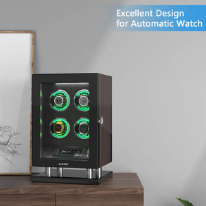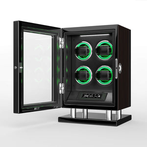 Remontoir de 4 montres avec entrée d'empreinte digitale améliorée, lumière RVB, télécommande LCD, moteurs Mabuchi