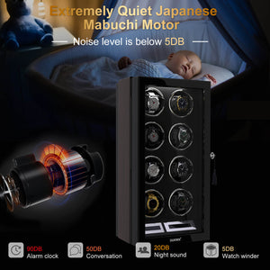Écran tactile LCD et télécommande : l'écran tactile LCD facilite la configuration de modes uniques pour chaque montre. En outre, vous pouvez également le contrôler par télécommande, de sorte que vous puissiez facilement contrôler le remontoir de la montre à tout moment.