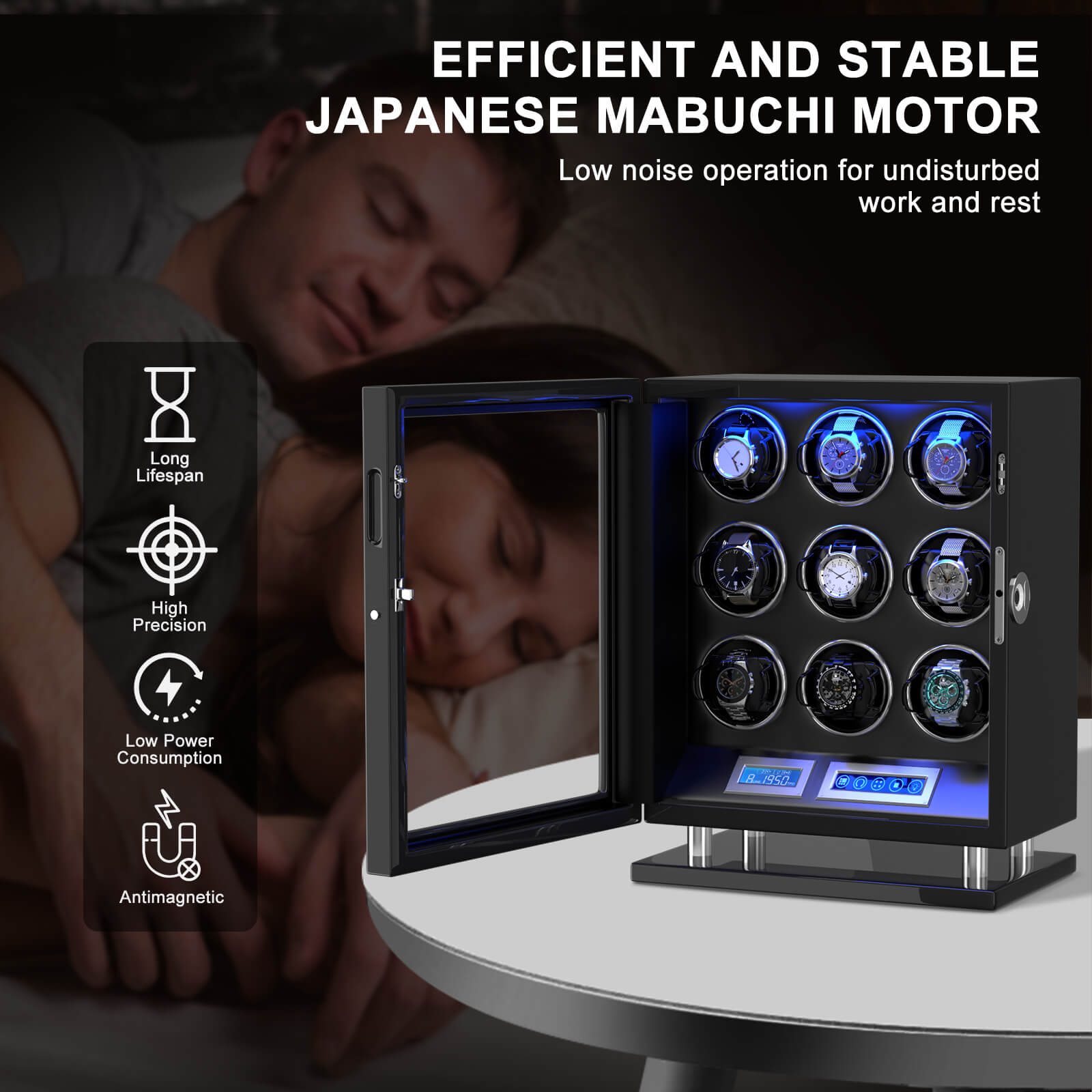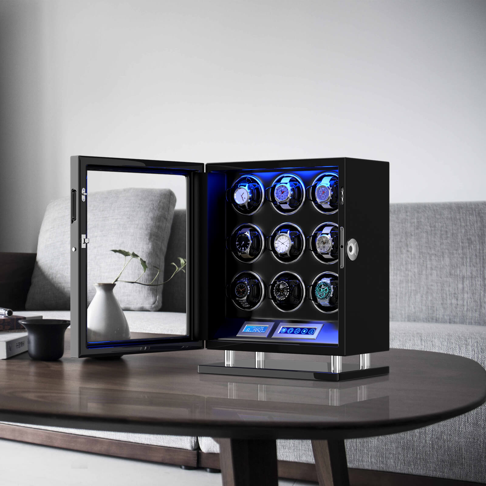 Maison Remontoir à 9 montres, interrupteur à empreintes digitales, moteurs Ultra silencieux, grande montre, rotateur automatique