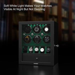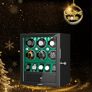 • Matériau : Le remontoir automatique DUKWIN pour 6 montres est fabriqué à 100 % en bois fait main avec une fenêtre en verre organique acrylique, un extérieur élégant en piano brillant et un intérieur en cuir végétalien.