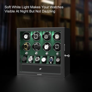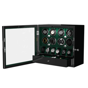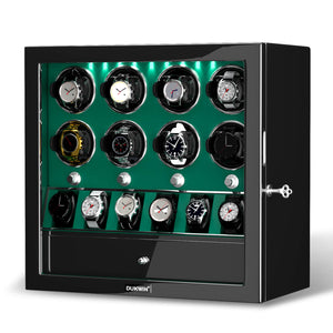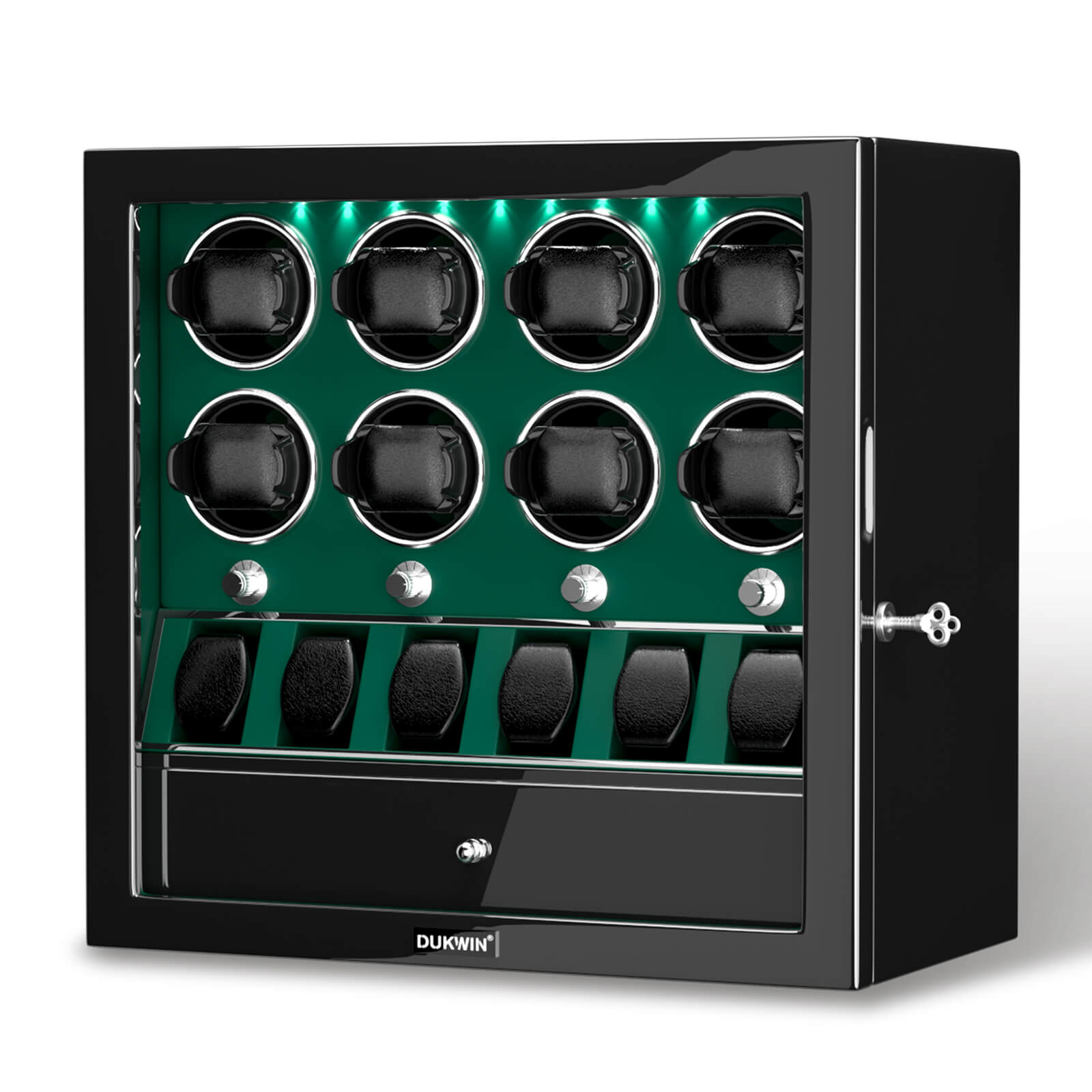 • Matériau : Le remontoir automatique DUKWIN pour 8 montres est fabriqué en bois fait à la main avec une fenêtre en verre organique acrylique, un extérieur élégant en piano brillant et un intérieur en cuir végétalien.