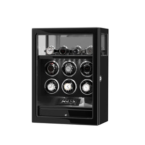 Maison Verrouillage D'empreintes Digitales 6 Remontoirs De Montres Avec Télécommande LCD De Stockage De Montres Supplémentaires - Noir