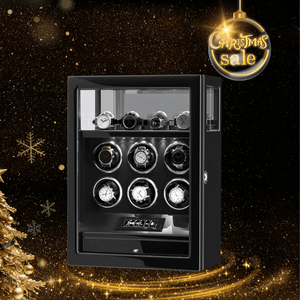 Verrouillage D'empreintes Digitales 6 Remontoirs De Montres Avec Télécommande LCD De Stockage De Montres Supplémentaires - Noir