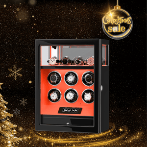 Verrouillage D'empreinte Digitale 6 Remontoirs De Montres Avec Télécommande LCD De Stockage De Montres Supplémentaires - Orange Flamme