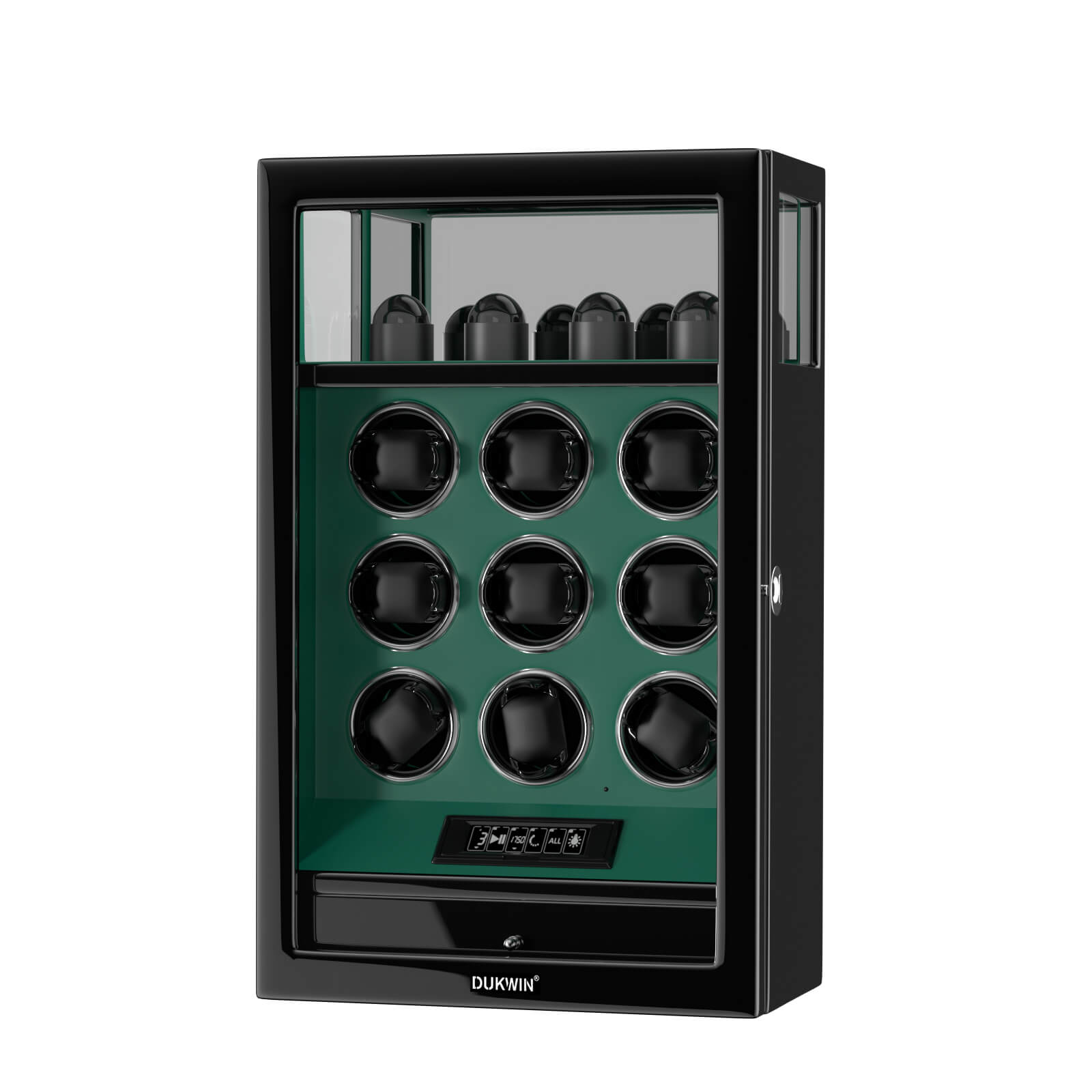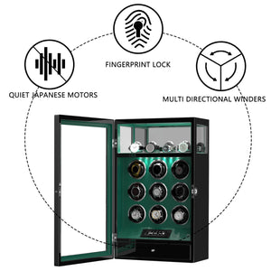 Verrouillage D'empreinte Digitale 9 Remontoirs De Montre Avec 4 Supports De Montre Stockage Télécommande LCD - Vert