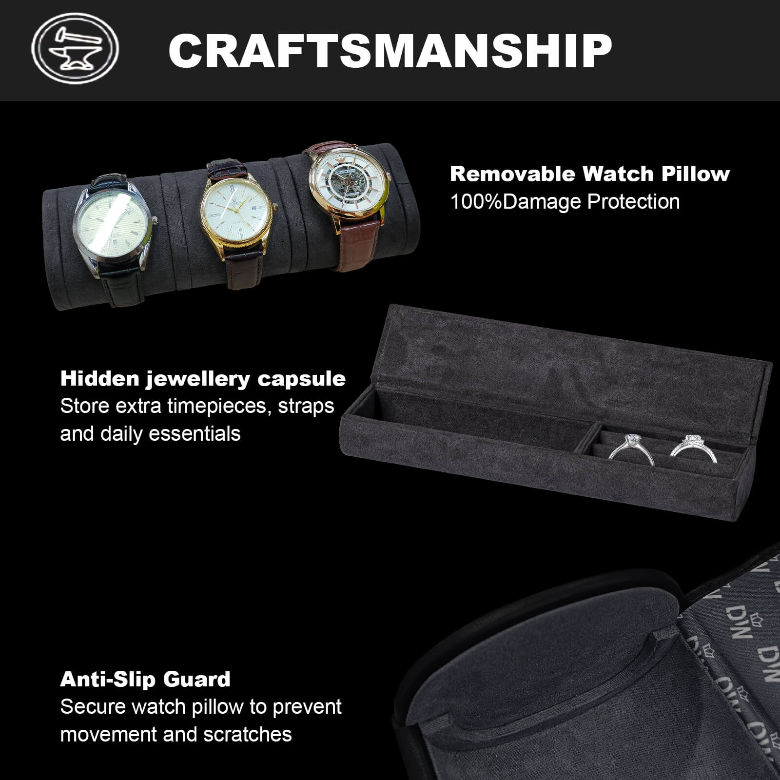 avec un design unique adapté aux montres de différentes tailles, et il est super compact.
