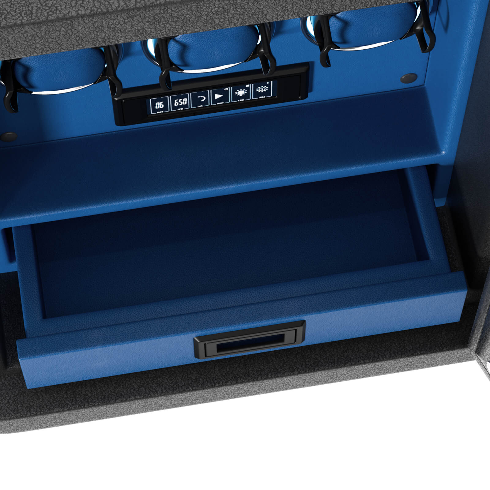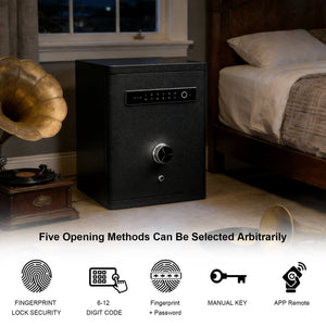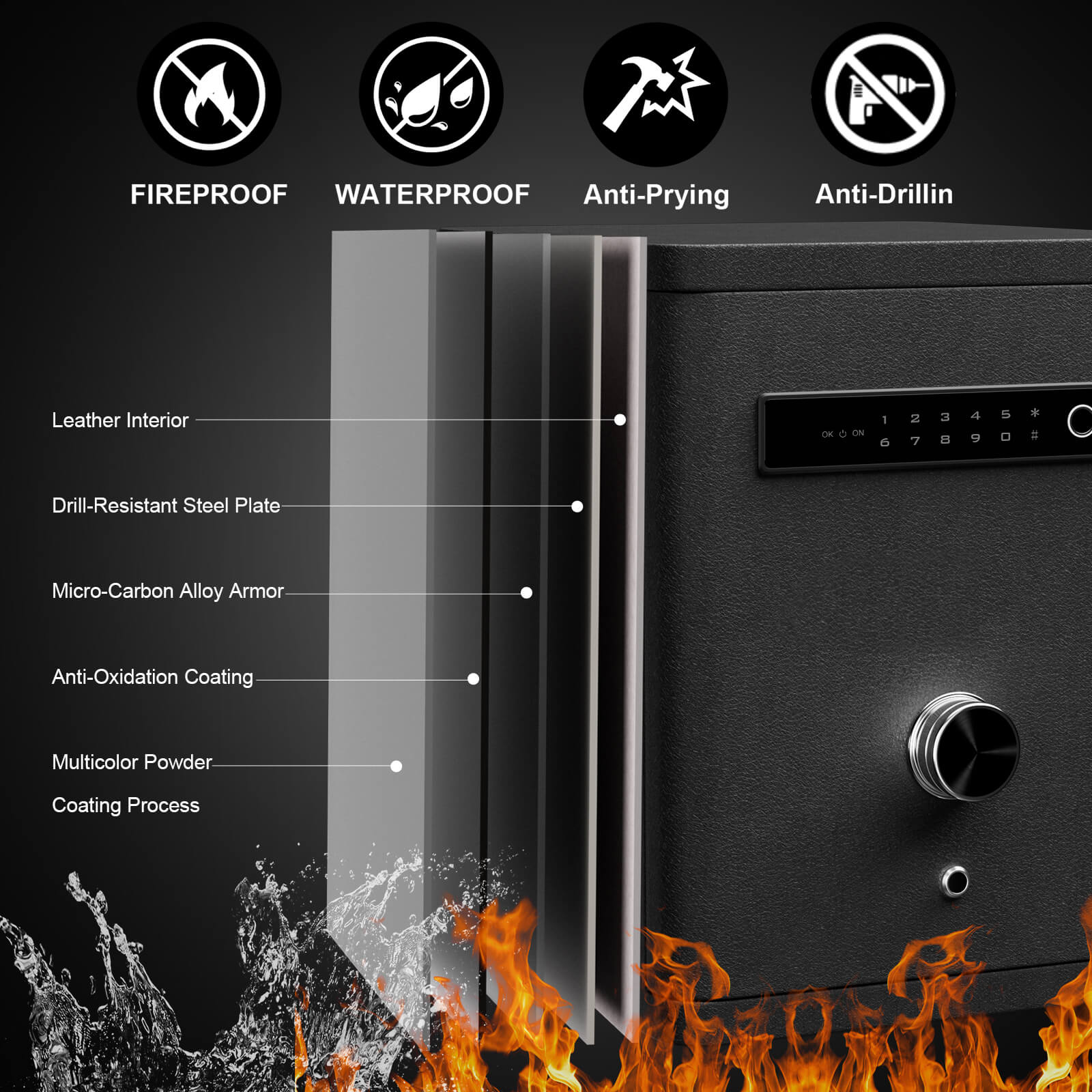 | Fonctionnalités supplémentaires | - Écran tactile intelligent - Alarme intelligente - Démarrage à distance de l'application - Éclairage intérieur LED et lumière RVB - Scanner biométrique avancé capable de stocker 30 empreintes digitales uniques - Une batterie lithium-ion rechargeable fournit une alimentation mobile jusqu'à 4 à 6 mois - Résistant au feu pendant 30 minutes jusqu'à 1200° F |