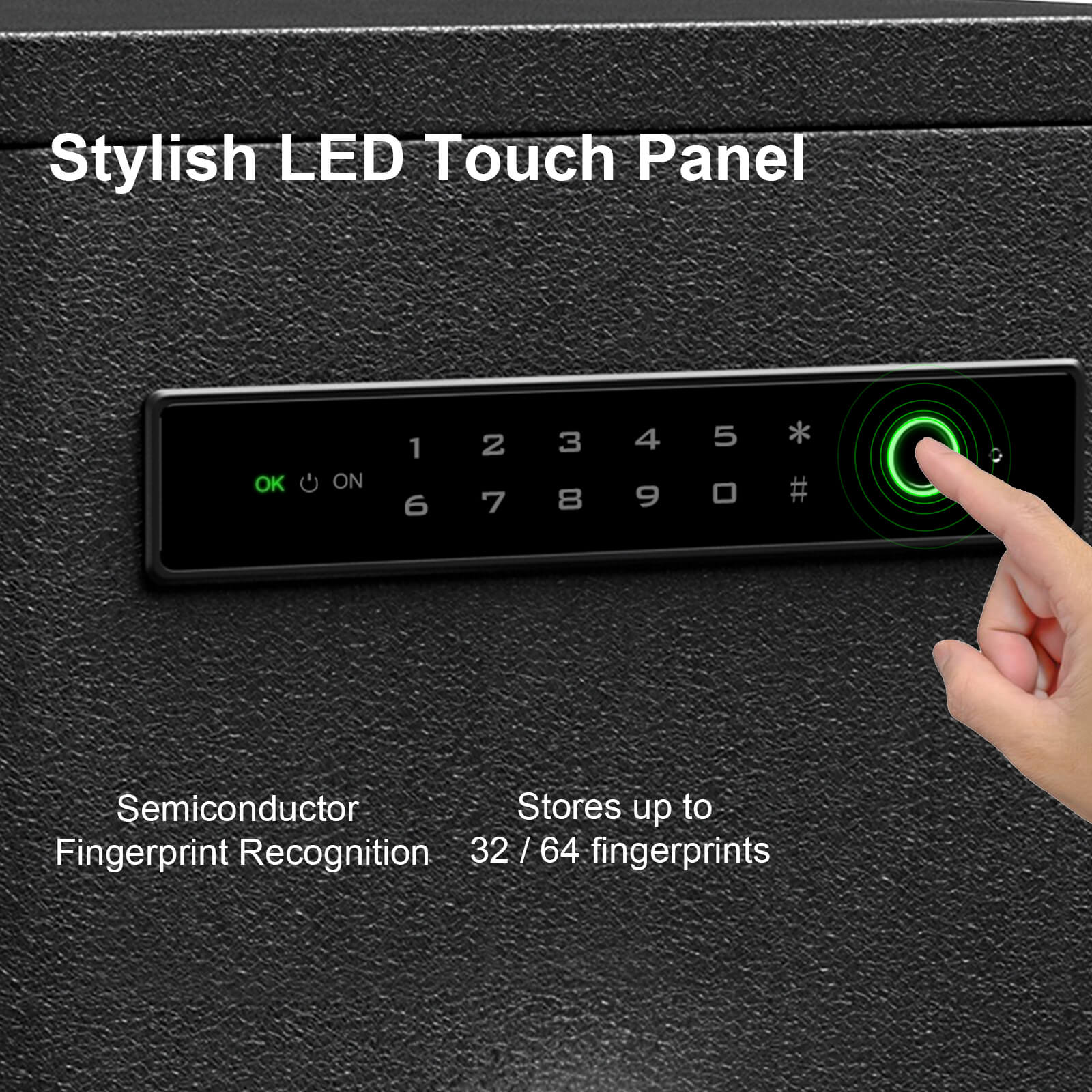 | Fonctions supplémentaires | - Écran tactile intelligent - Système d'alarme double - Démarrage à distance via application - Éclairage intérieur LED et halo lumineux RGB - Scanner biométrique avancé capable de stocker 30 empreintes digitales uniques - Une batterie lithium-ion rechargeable fournit une alimentation mobile pendant 4 à 6 mois. - Résistant au feu pendant 30 minutes jusqu'à 1200 °F |