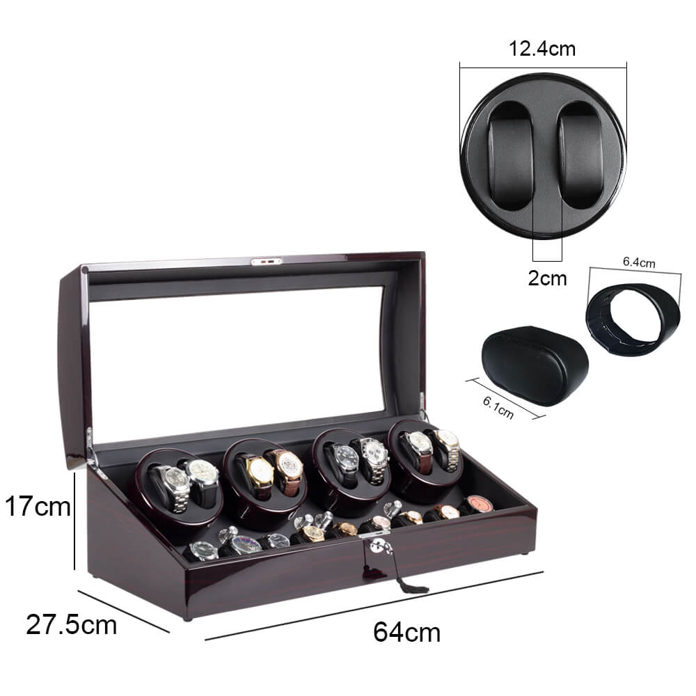 Maison Remontoir de grande taille pour 8 montres, grand rangement, moteurs Mabuchi silencieux avec serrure, noir