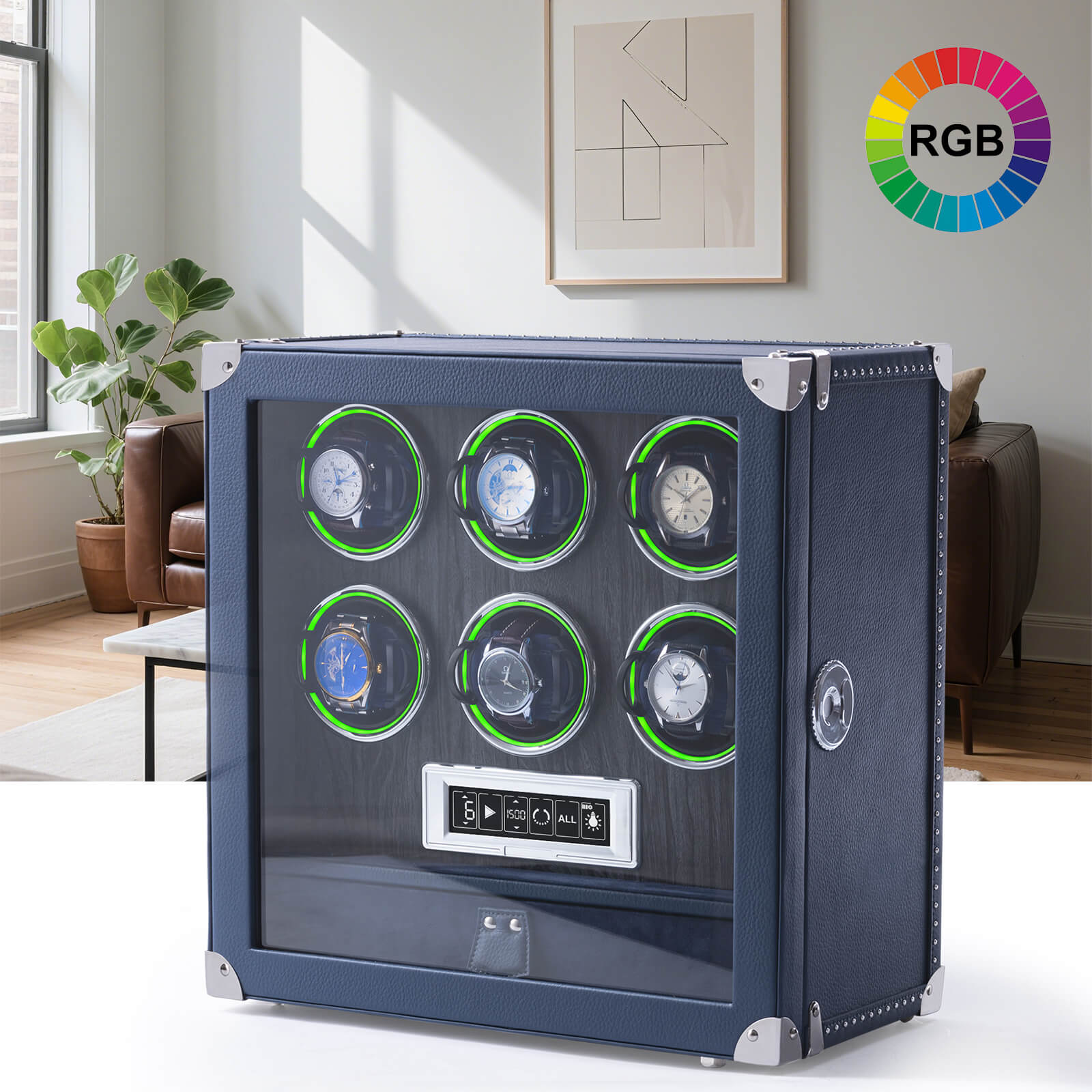 Maison Remontoir 6 + 6 montres avec rangements supplémentaires Aurora Blue Light
