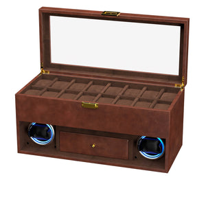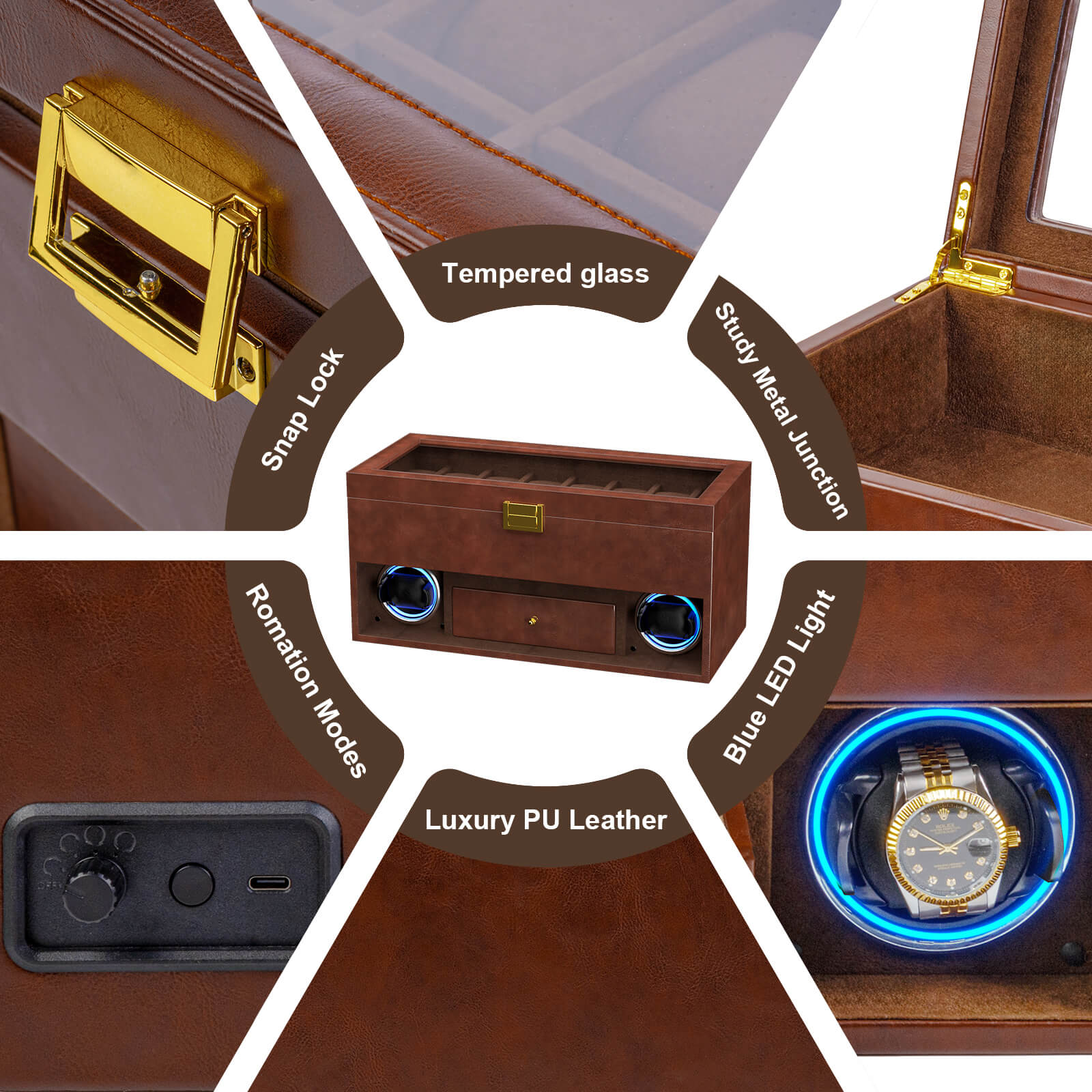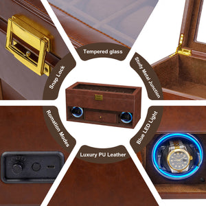 Verrouillage D'empreinte Digitale 3 Remontoirs De Montres Avec Télécommande LCD De Stockage Supplémentaire De 4 Montres - Noir