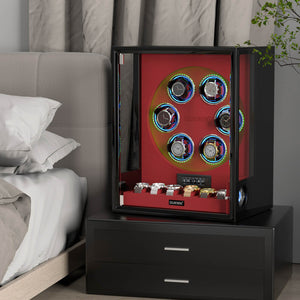 Verrouillage D'empreinte Digitale 3 Remontoirs De Montres Avec Télécommande LCD De Stockage Supplémentaire De 4 Montres - Noir