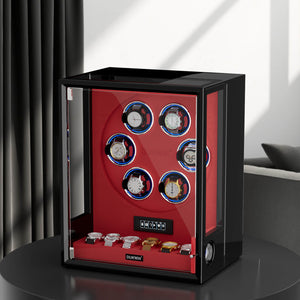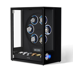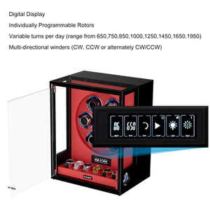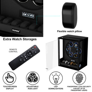 Verrouillage D'empreinte Digitale 3 Remontoirs De Montres Avec Télécommande LCD De Stockage Supplémentaire De 4 Montres - Noir