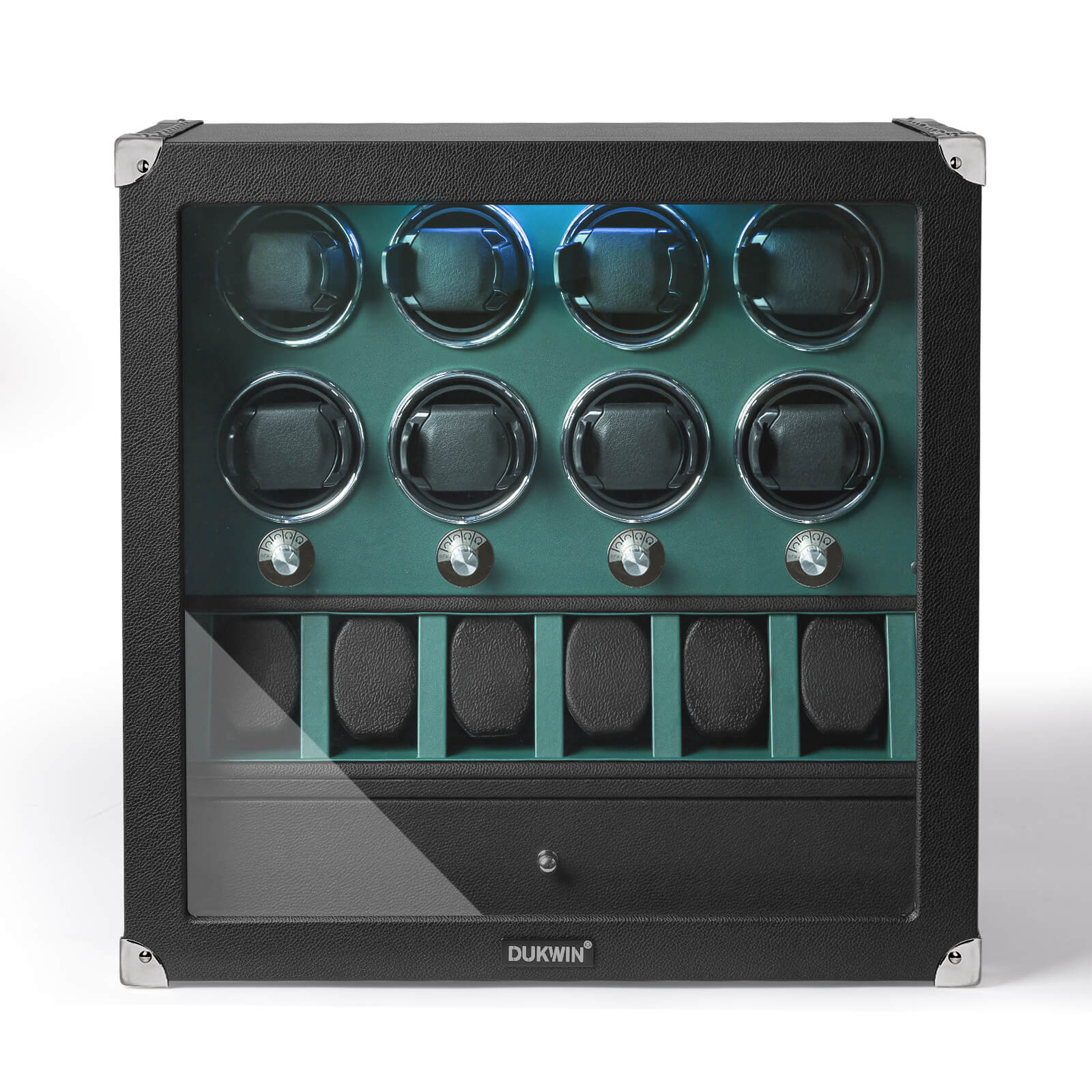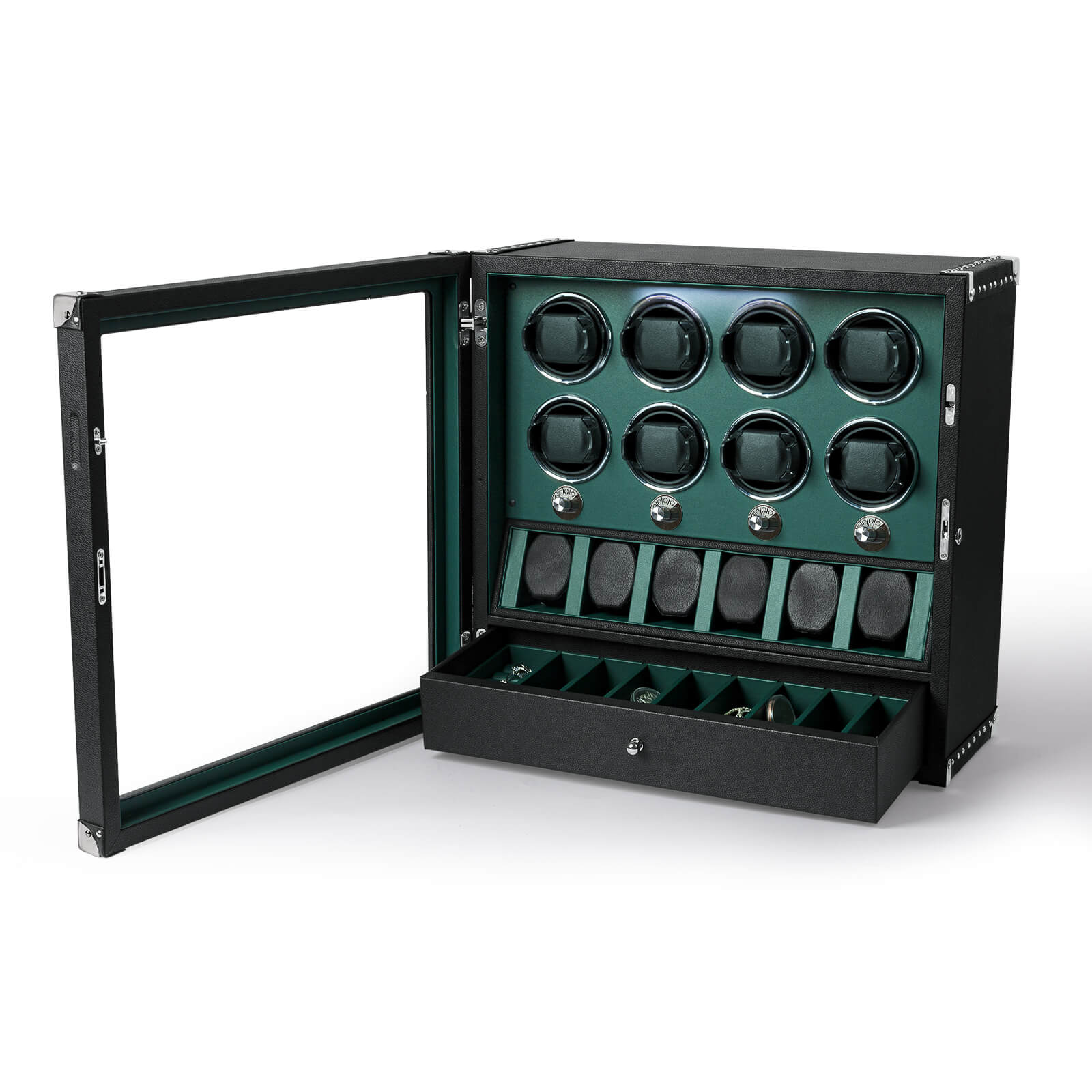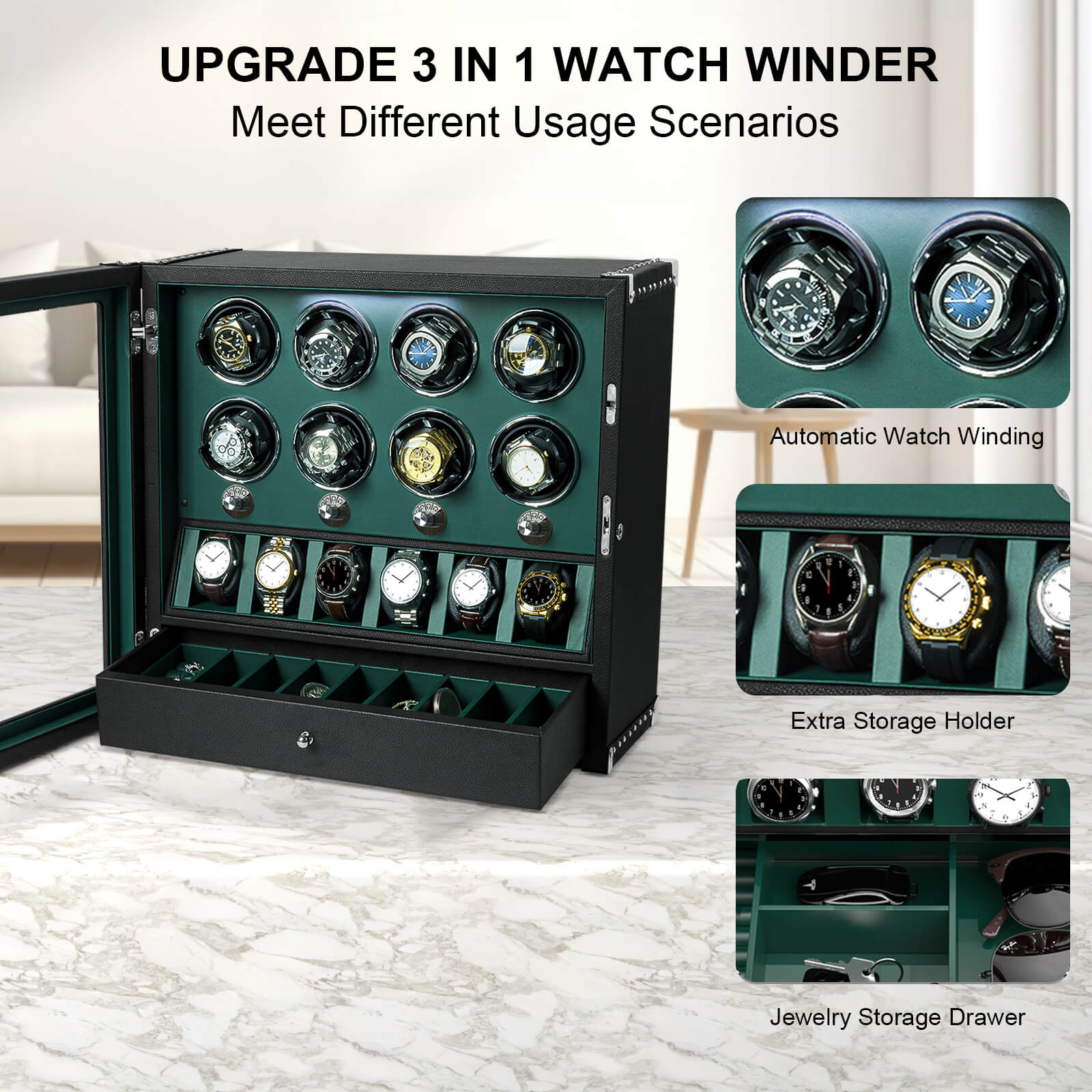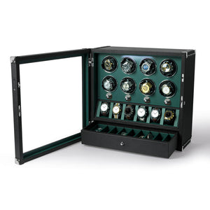 4 remontoirs de montres pour montres automatiques avec organisateur d'affichage de 6 montres - Vert