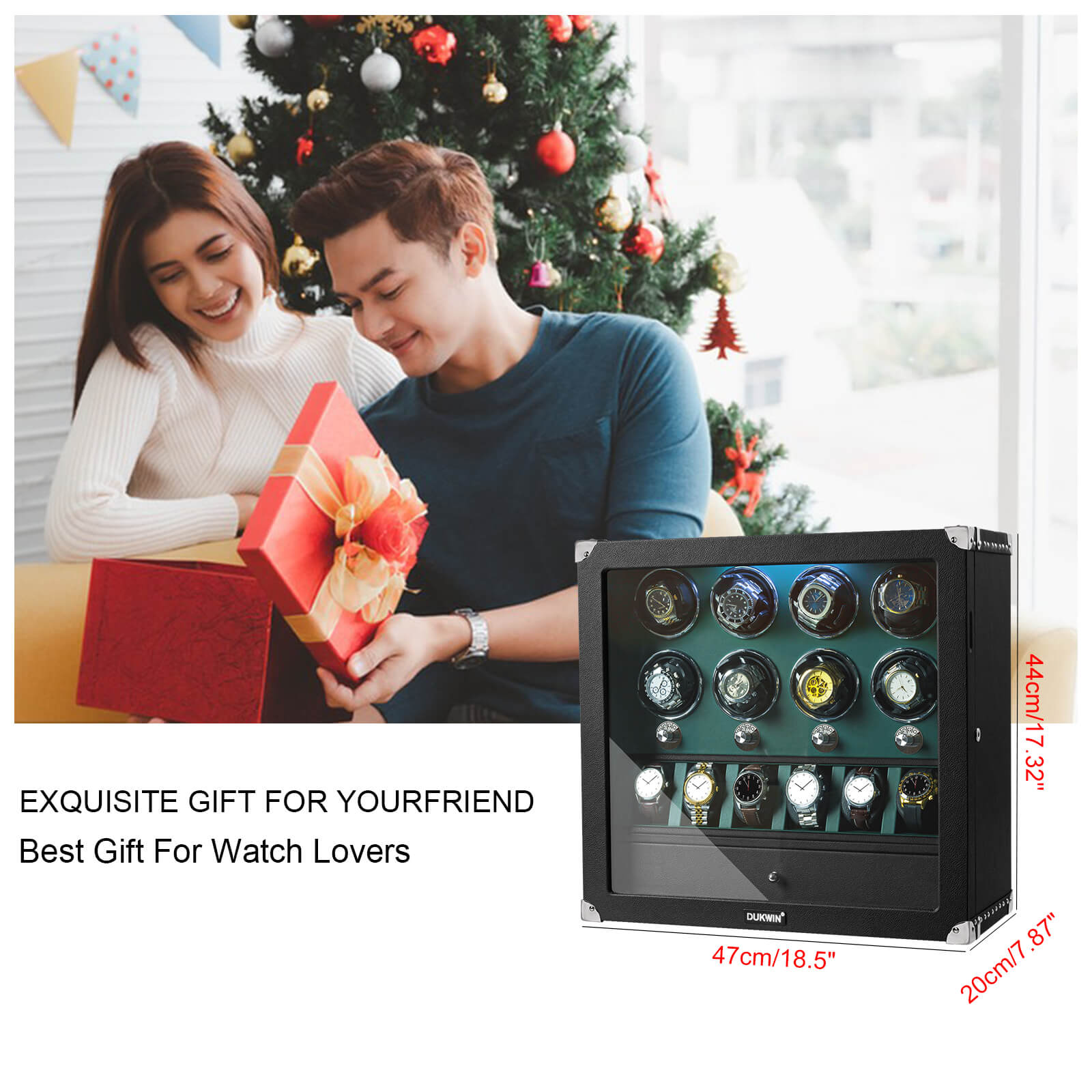 • Remontoir pour 4 + 6 montres : 46 cm (L) x 20 cm (l) x 32 cm (H) / 18,11" x 7,87" x 12,59" ; 11,2 kg Remarque : les mesures peuvent varier de 2 à 3 cm entre la taille décrite et la taille réelle.