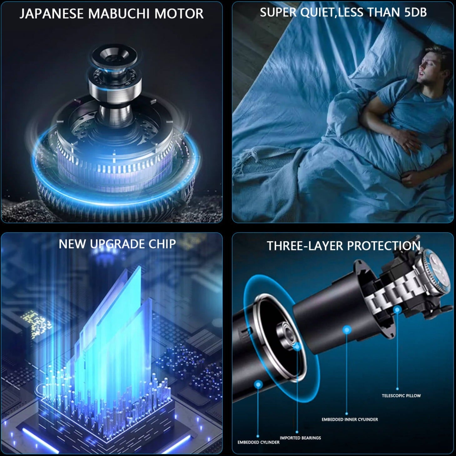 Type Fingerprint entry, RGB light changing, LED light stripe, Remote control, LCD touchscreen panel, Mabuchi Motor
