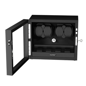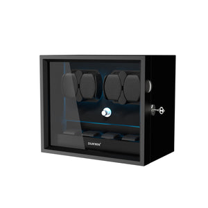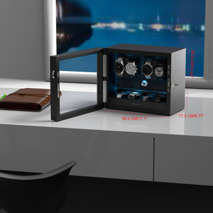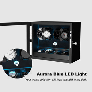 4 + 4 Watch Winder with Extra Storages Aurora Blue Light Quiet Motors - Black