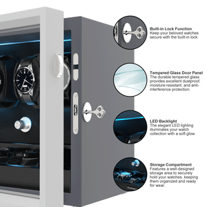 【LED Light Bar】Internal setting the LED light bar, watch winder dark night emitting aurora blue shimmering light.