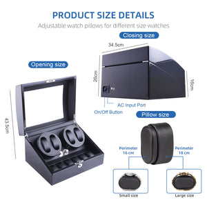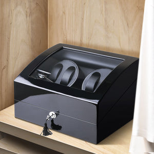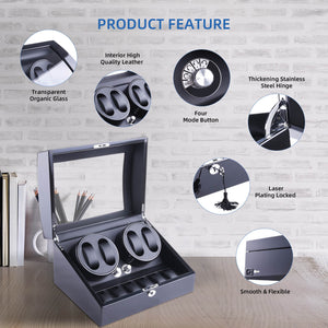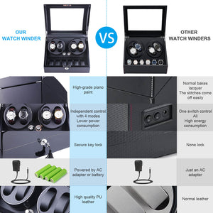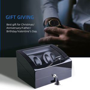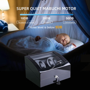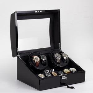 4 Watch Winder with 6 Storage Space with Quiet Mabuchi Motors - Black