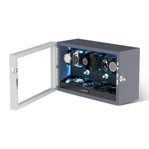 Home 6 + 6 Watch Winder with Extra Storages Aurora Blue Light Quiet Motors - Silken Grey