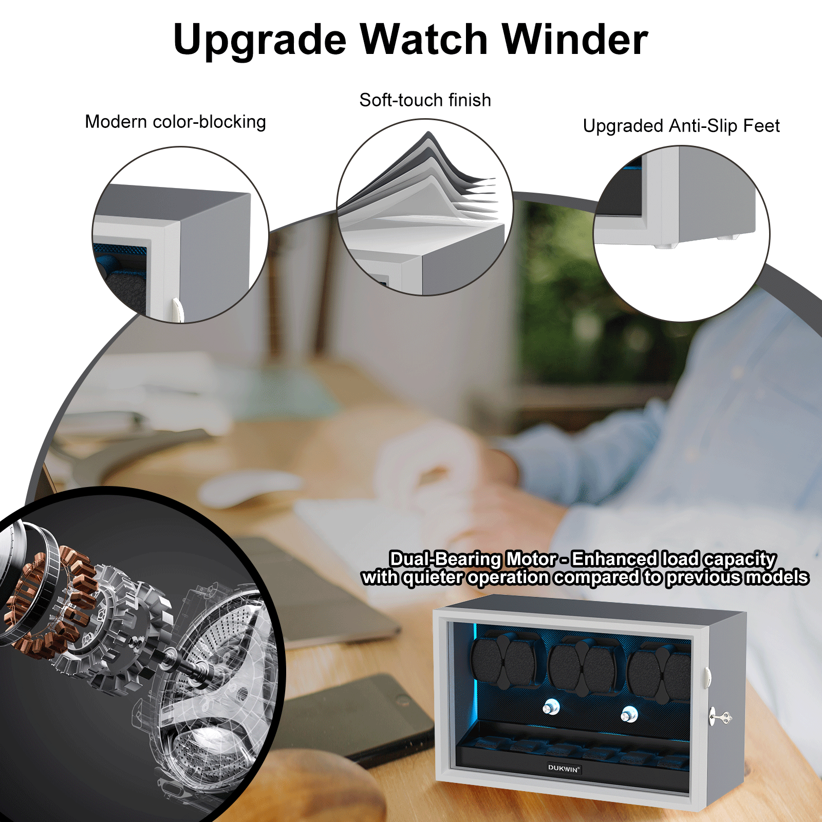 【4 Rotation Modes】The watch winder uses a new more stable generation of chips.