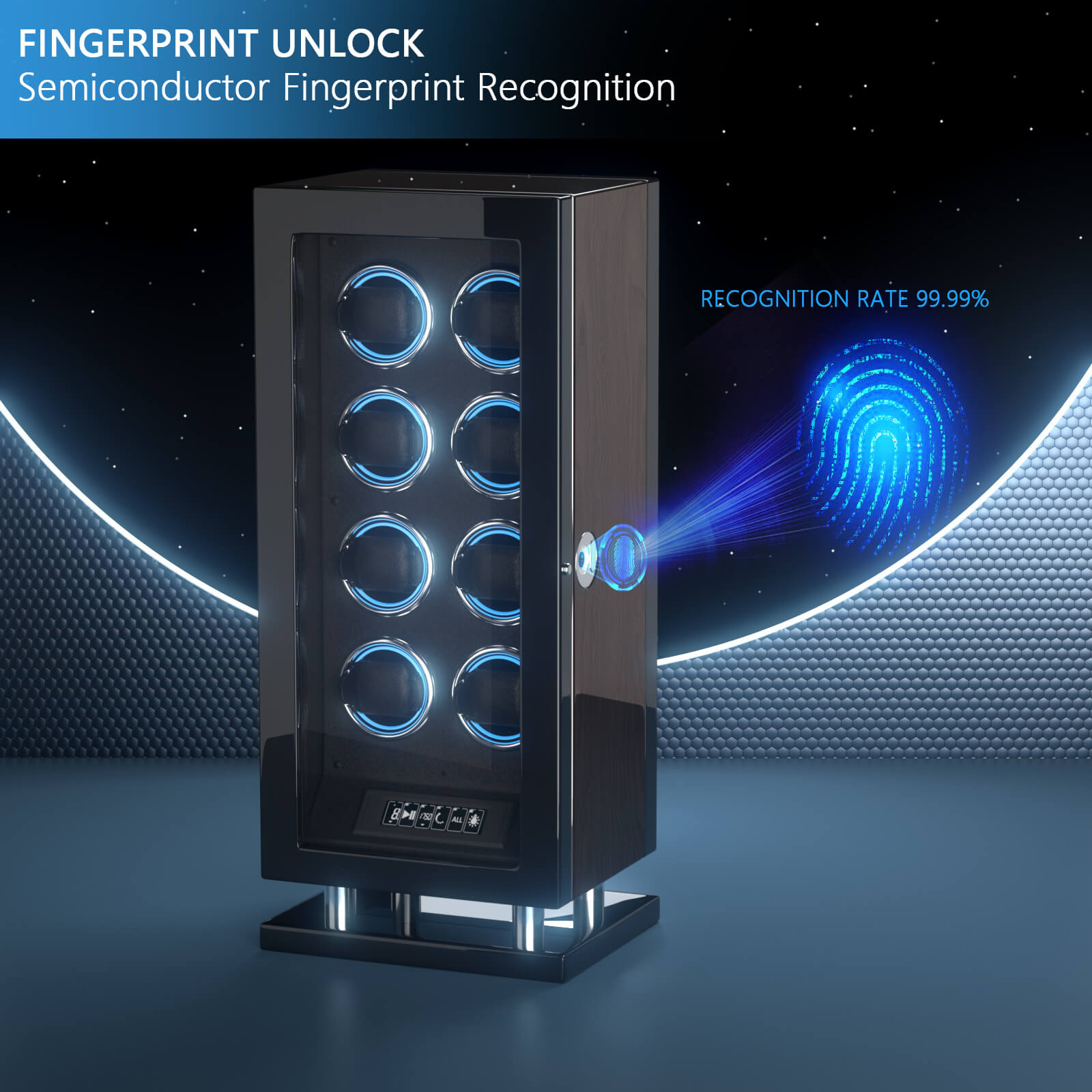 Special Edition- 8 Watch Winder with Fingerprint Entry RGB Light LCD Remote Control