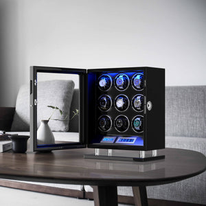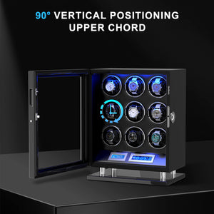 SAFE: Like our other collection of watch winders, Dukwin Watch Winder for 9 Watches are equipped with a safety program that ensures that they can never over-wind a timepiece.
