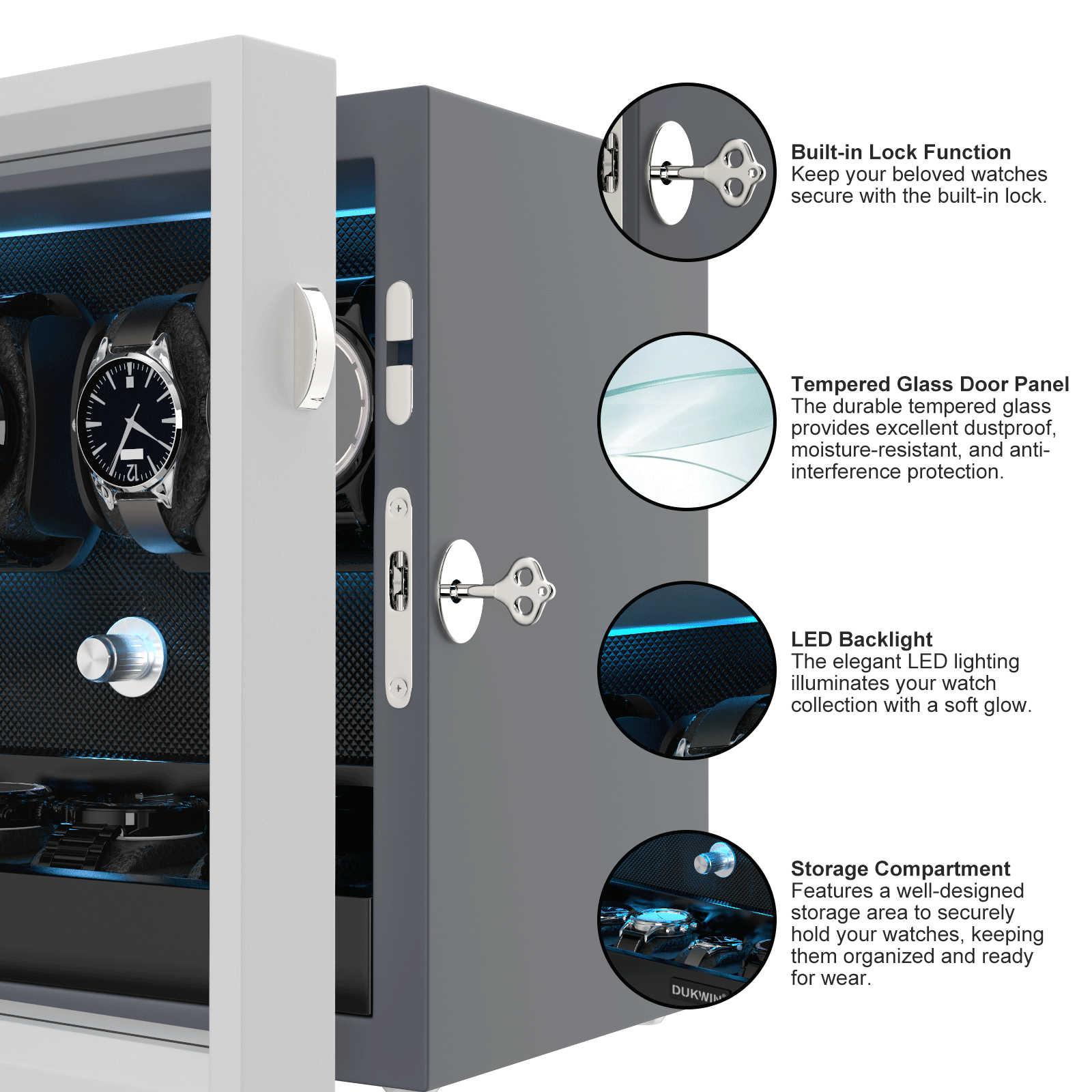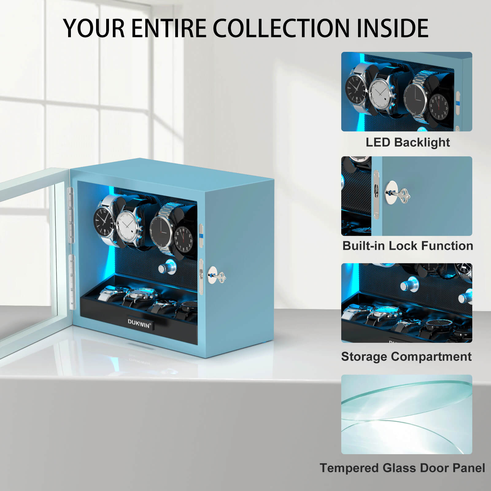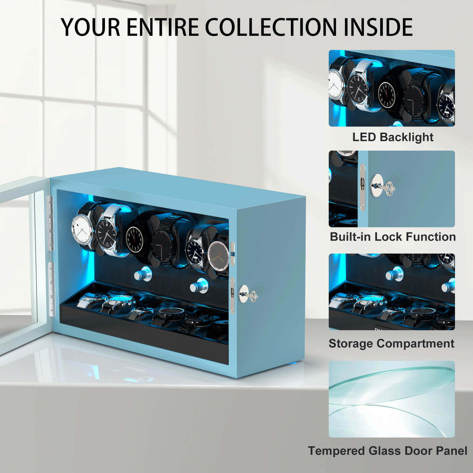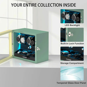 Automatic Watch Winders Muti-Slots with Aurora Blue Backlight and Foam Pad