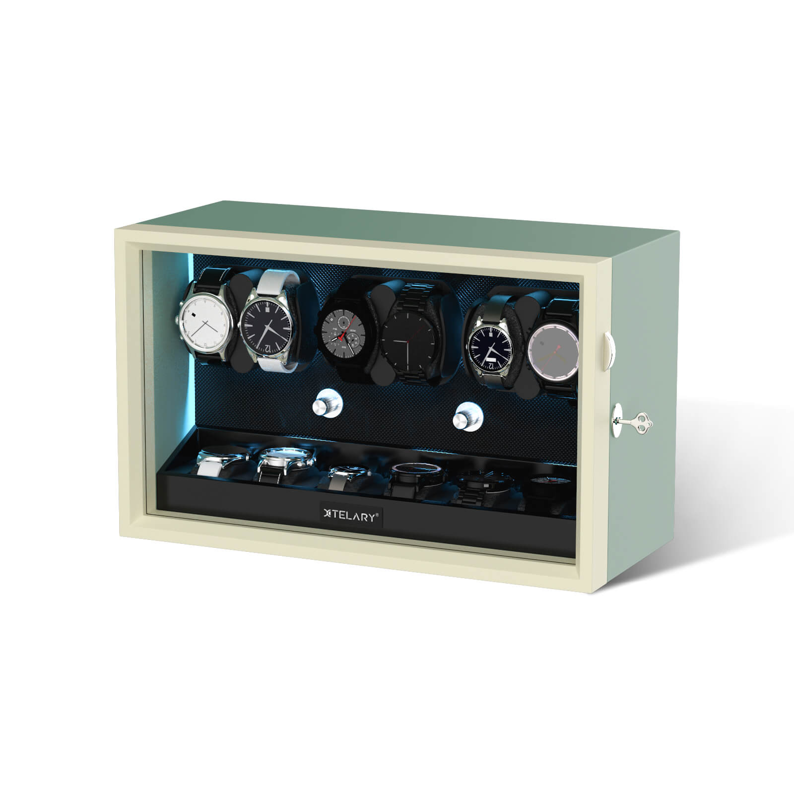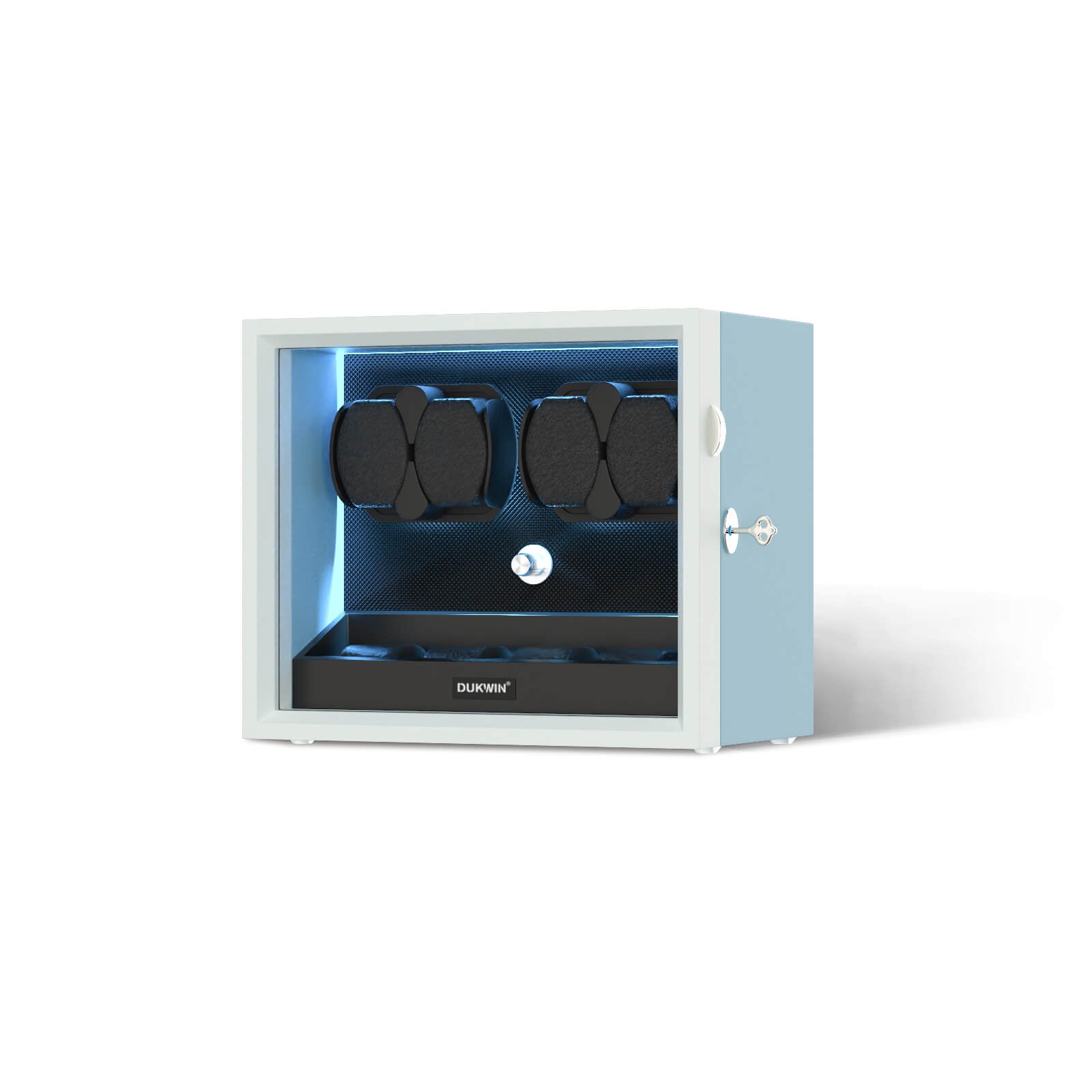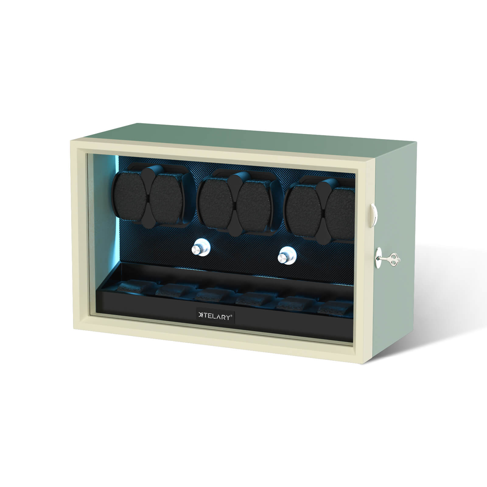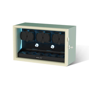 【LED Light Bar】Internal setting the LED light bar, watch winder dark night emitting aurora blue shimmering light.