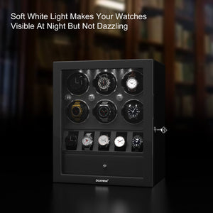 • Material: DUKWIN Automatic Watch Winder for 6 watches is made of handmade wooden with acrylic organic glass window, stylish piano-gloss exterior and the interior vegan leather.