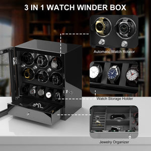 Compact 6 Watch Winders with 5 Watches Organizer Storage Space Quiet Mabuchi Motor