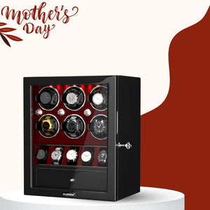 - This classic 6-watch winders from Dukwin presents the ideal solution for winding up to 6 watches at the same time and with a watch deck storage to display your another 5 watches. All presented in an elegant closed display case. Showcasing our usual commitment to quality design and engineering, this 6-watch winder incorporates a number of luxury features that make it stand out from the crowd.