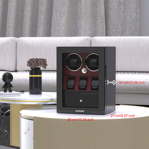 2 Watch Winders for Automatic Watches with 3 Watches Organizer Storage- Red