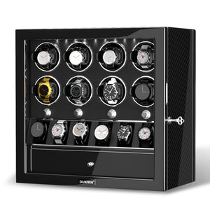 Material: DUKWIN Automatic Watch Winder for 8 watches is made of handmade wooden with acrylic organic glass window, stylish piano-gloss exterior and the interior vegan leather.