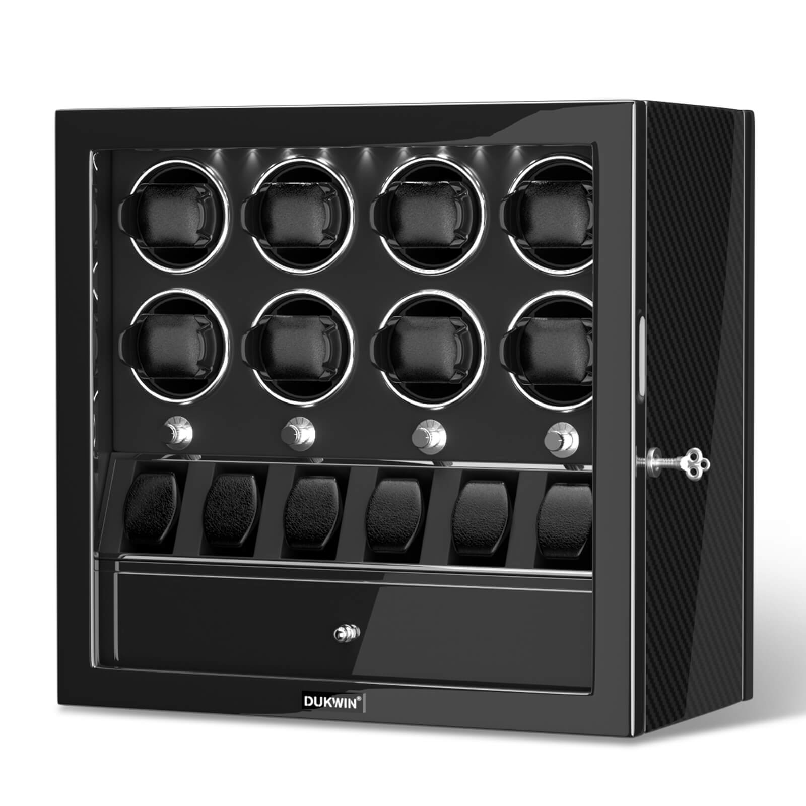 8 Watch Winders for Automatic Watches with 6 Storage Organizer Case - Carbon Fiber