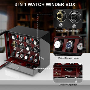 8 Watch Winders with 6 Watches Organizer Case Automatic Rotation - Red