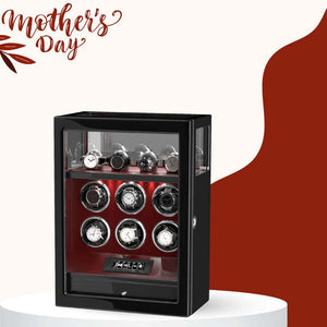 Fingerprint Lock 6 Watch Winders with Extra Watches Storage LCD Remote Control - Red