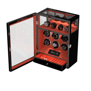 LCD and REMOTE CONTROL: Shows all information on the watch winders modes. Touchscreen option and Remote Control make a setup process much easier.