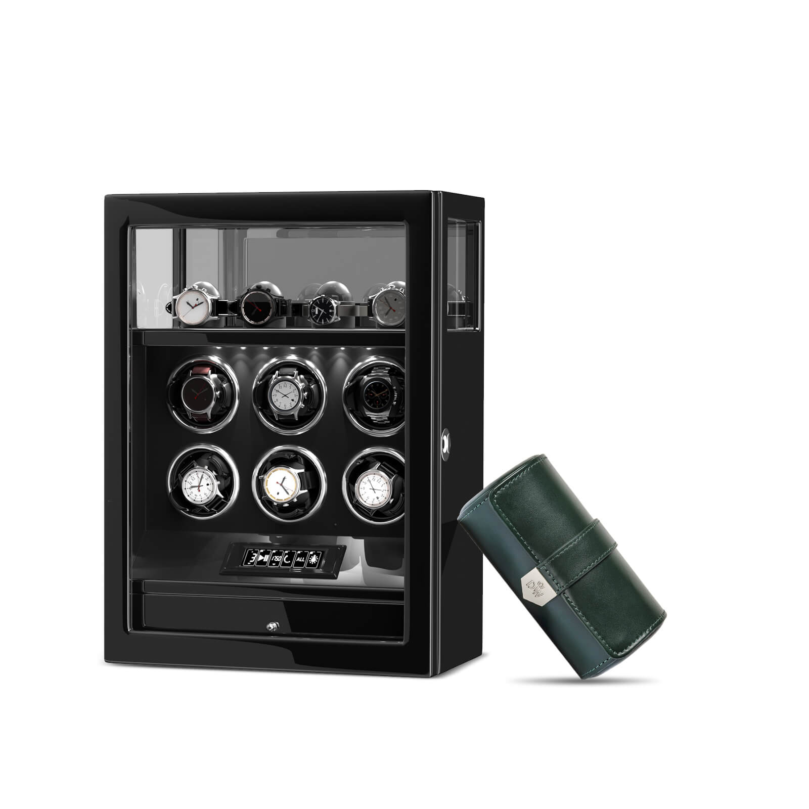 Limited Edition Gift Set: Fingerprint 6 Watch Winder + Vegan Leather Double Wacth Roll