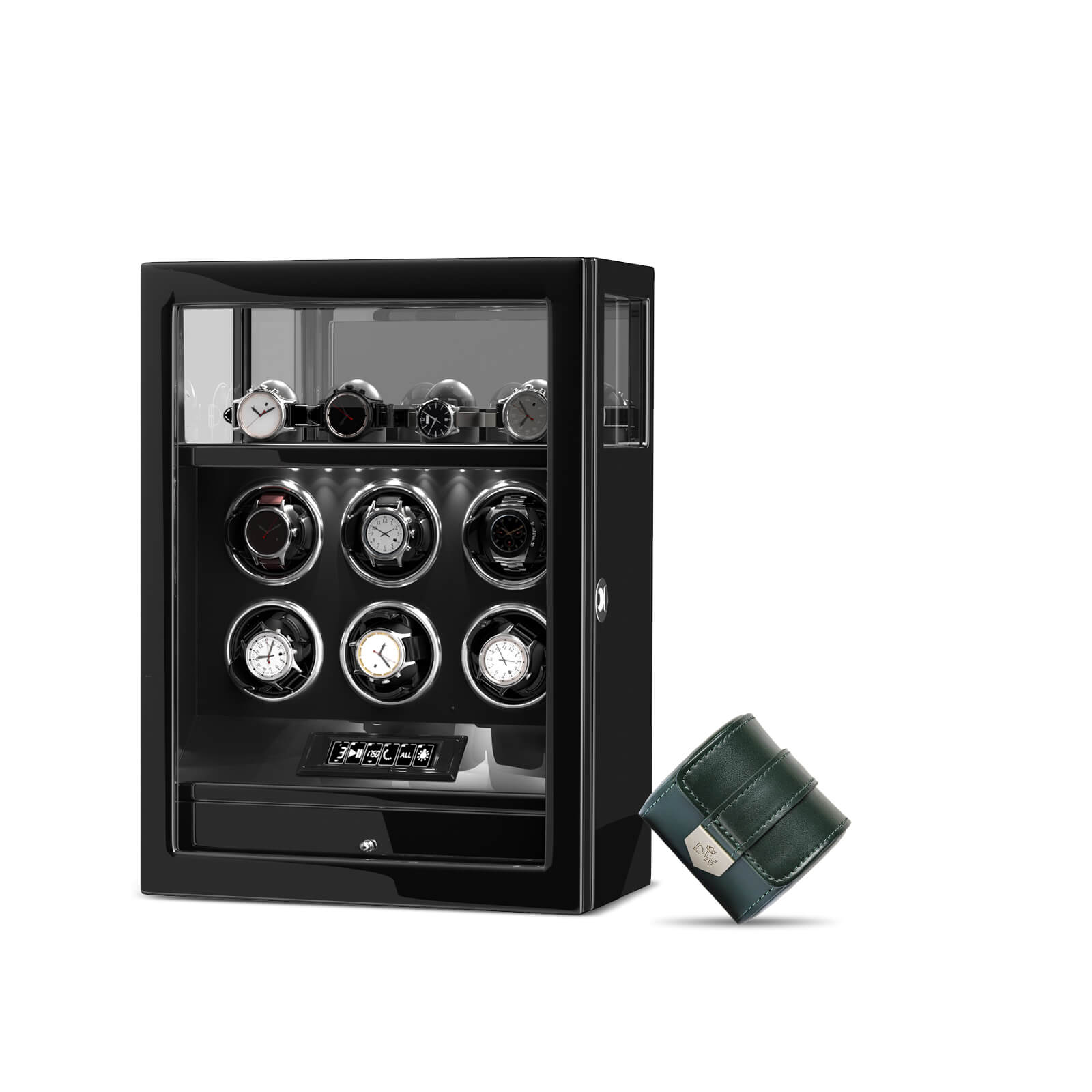 Limited Edition Gift Set: Fingerprint 6 Watch Winder + Vegan Leather Single Wacth Roll