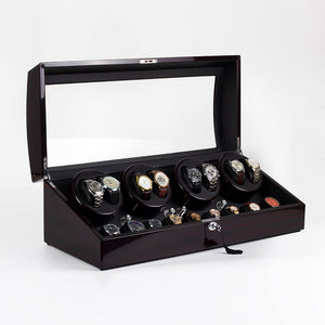 Large Size - 8 Watch Winder Large Storage Quiet Mabuchi Motors with Lock - Ebony