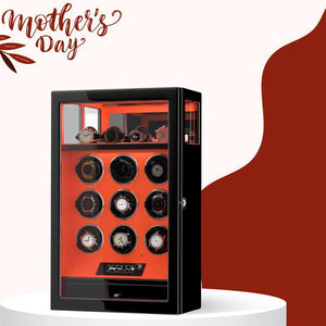 Fingerprint Lock 9 Watch Winders with Extra 4 Watches Storage LCD Remote Control - Flame Orange