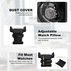 bracelet/wrist. It can fit Max 55mm watch dial, the bracelet/ wrist diameter limited from 35 - 62mm.