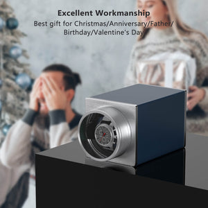 Single Watch Winder for Automatic Watches Vegan Leather Quiet Mabuchi Motors for Travel - Indigo Blue
