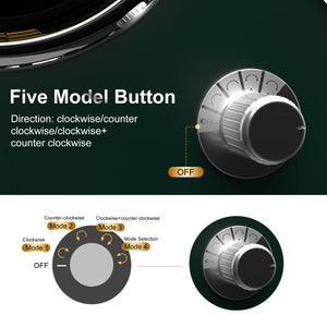 Mode 4: Rotate 5min clockwise, rotate 5min counter-clockwise, repeat above for 3h, rest for 9h, cycle repeat.