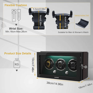Home Triple Watch Winder for Automatic Watches with Quiet Mabuchi Motor - Green
