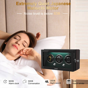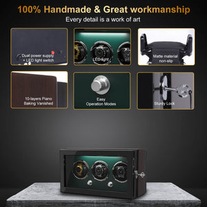 Triple Watch Winder for Automatic Watches with Quiet Mabuchi Motor - Green